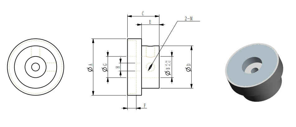 型號(hào) | 外徑A | 可選內(nèi)孔B | 高度C | D | E | F | G | H | M | 傳動(dòng)扭力N.m | |